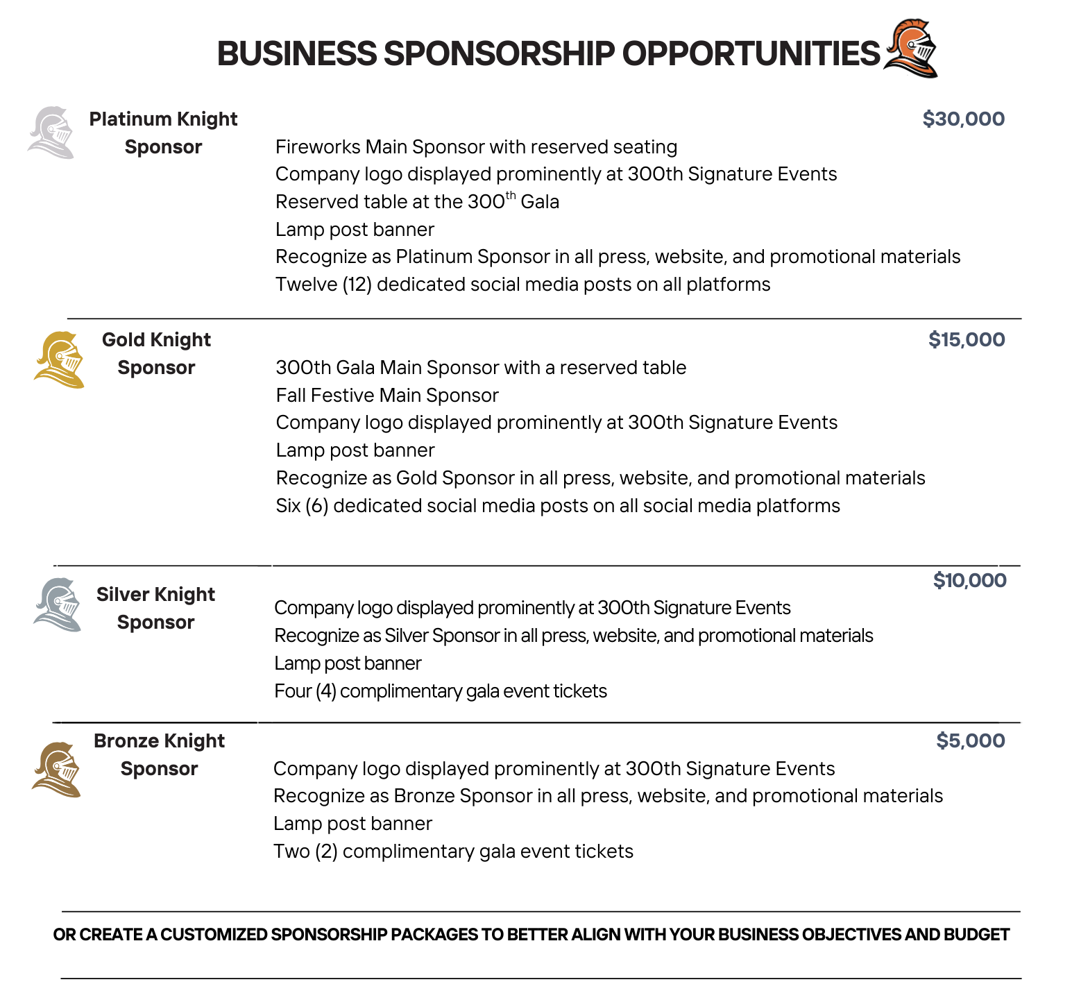 To make this year-long celebration a success, we're inviting local businesses like yours to sponsor this landmark celebration. Your support is essential to ensuring Stoughton's 300th Anniversary is a memorable 2026 year for everyone involved.
